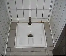 Sur le plan de l'urbanisme, le principal choix pour la gestion des excreta concerne l'évacuation sur place ou à distance. L'évacuation à distance consiste à relier une toilette soit à un réseau d'égout (qui évacue à la fois les solides et les liquides), soit à une fosse septique qui retient les solides et évacue les liquides. Ces deux systèmes ont besoin d'une grande quantité d'eau pour fonctionner : plus de 25 litres par jour et par personne[9]. L'évacuation sur place consiste à utiliser une latrine située sur une fosse creusée ou surélevée, contenant les matières fécales et laissant éventuellement la fraction liquide s'infiltrer dans le sol si la nappe phréatique est suffisamment loin. Le problème de la vidange de la fosse se pose alors.
