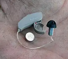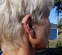L'audioprothèse, appelée familièrement « appareil auditif », a pour objectif de compenser une perte auditive par un appareillage adéquat, et de pouvoir selon les cas pallier les désordres donnés par la surdité dans la capacité d'orientation de la personne, la position du corps dans l'espace et sa trajectoire obtenue. Elle a remplacé le sonotone à entonnoir.