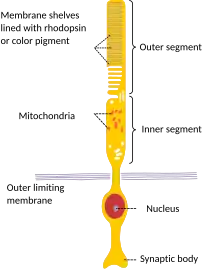 - ↑ (en) Curcio CA, Sloan KR, Kalina RE, Hendrickson AE, « Human photoreceptor topography », J Comp Neurol, vol. 292, no 4, , p. 497-523. (PMID 2324310).
