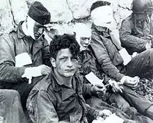 Des soldats américains bandés après avoir été blessés à Omaha Beach (6 juin 1944).