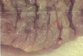Au sommet des ondulations de la bande striée, se trouvent des corpuscules de Meissner, récepteurs sensoriels qui répondent à un étirement mécanique. Les corpuscules de Meissner sont abondants dans les régions sensibles au toucher, comme le bout des doigts et les lèvres. Mais Taylor fait l'hypothèse que les corpuscules de Meissner placés dans la bande striée, structure disposée comme un accordéon, sont adaptés à détecter des étirements, plutôt que des touchers légers.
