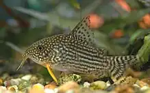 Chez certains poissons, ce sont des filaments tactiles mous et sensibles placés par paires de chaque côté de la bouche. C'est un organe sensoriel (cellules gustatives et tactiles pour détecter les courants, les mouvements et les variations de température), à l'instar de nos papilles gustatives[2],[3]. De nombreux poissons benthiques ont des barbillons pour fouiller le fond des rivières ou des étangs (notamment la plupart des 2 500 à 3 000 espèces ou dénominations différentes de Siluriformes). La dénomination de « poisson-chat » couvre de nombreuses espèces caractérisées par la présence de barbillons autour de la bouche couramment appelés « moustaches », et qui font penser aux vibrisses des chats (qui elles aussi sont couramment appelées « moustaches ».
