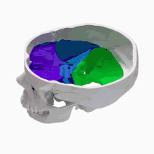 La fosse antérieure en violet, la fosse moyenne en bleu,la fosse postérieure en vert.