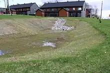 Un bassin de rétention sec est utilisé pour compenser l'imperméabilisation produite par un développement immobilier à Sherbrooke au Québec, Canada.