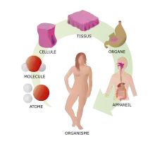 Il y a là un vaste domaine de connaissance, s'intéressant au corps humain et à chacun de ses niveaux d'organisation[1] :
