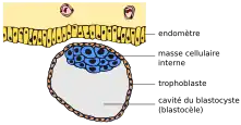 Le blastocyste (du grec βλαστός (blastos) signifiant « germe, bourgeon » et κύστις (kystis) pour « vessie ») est un stade du développement embryonnaire précoce des mammifères (d'une durée de 5 à 7 jours chez l'être humain), au cours duquel coexistent les cellules périphériques, appelées cellules du trophectoderme (ou trophoblaste), à l'origine des structures extra-embryonnaires comme le placenta ou le cordon ombilical, et des cellules de la masse interne, qui forment le bouton embryonnaire et donnent naissance à l'embryon proprement dit et à quelques annexes embryonnaires. Entre la masse cellulaire interne et le trophectoderme se forme une cavité, le blastocèle.