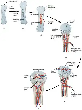 Durant la première année d’élongation, la croissance passe par trois étapes d’ossification : endoconjonctive, transitionnelle et enchondrale[16].
