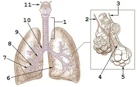 9 : Bronche secondaire (lobaire)