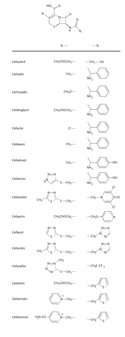 Structure des céphalosporines de première génération