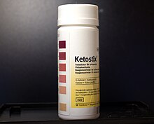 La présence de corps cétoniques dans l'urine indique que le corps utilise les graisses comme source d'énergie principale en raison d'une insuffisance de glucose disponible[3].
