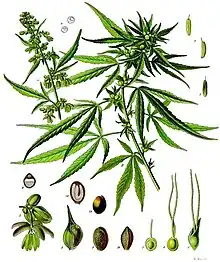 Les cannabinoïdes endogènes ont chez l'homme une action stimulante pour l'appétit. On connaît depuis l'Antiquité le même effet de la part des cannabinoïdes végétaux, par exemple celui du chanvre (cannabis sativa)[118]. L'effet apéritif du Δ9-tétrahydrocannabinol (THC), le principal principe actif du cannabis sativa, et le THC partiellement synthétique dronabinol, ont démontré leur effet stimulant de l'appétit[119],[120]. Ces substances utilisées comme médicaments pour la thérapeutique de l'anorexie et de la cachexie des malades du SIDA, sont autorisées aux États-Unis comme antiémétiques pour les cancers[121].