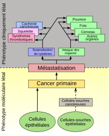 Une cachexie cancéreuse peut survenir indépendamment de la dimension et de l'extension de la tumeur, et indépendamment du fait qu'il y ait des métastases[11]. Le risque de survenue d'une cachexie cancéreuse est clairement plus dépendant du type de maladie cancéreuse que par exemple de la dimension de la tumeur, de sa localisation ou du degré de métastases. La cachexie peut être observée pour certains types de tumeurs dès un volume de 5 cm3, tandis que pour d'autres carcinomes, de grandes tumeurs ne déclenchent pas de cachexie. Ceci est une indication de ce que les tumeurs cachexiques présentent une expression génétique modifiée, qui permet aux cellules cancéreuses de produire des protéines lipolytiques (dégradant les graisses) et protéolytiques (dégradant les protéines), qui permettent la cachexie[88].