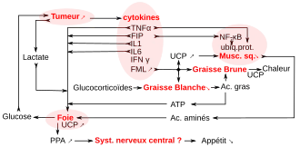 - ↑ (en) J. M. Argiles et al. (Art. de revue), « Cancer cachexia: the molecular mechanisms », Int J Biochem Cell Biol, vol. 35, , p. 405409 (PMID 12565701).