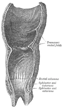 En son tiers moyen se trouve une ligne dite « ligne pectinée » qui correspond à un changement de muqueuse. Elle est la cicatrice laissée par la membrane cloacale qui s'est résorbée au cours de la 9e semaine du développement embryonnaire.