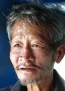 Homme aux cheveux et à la barbe presque totalement blancs