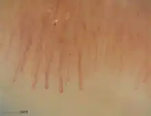 Cet examen consiste à observer la peau du rebord de l'ongle. Ainsi, il permet d'étudier l'aspect des capillaires sanguins (petites artères microscopiques) du pourtour de l'ongle.