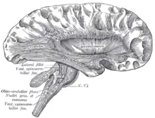 Vue latérale d'une dissection superficielle du tronc cérébral.