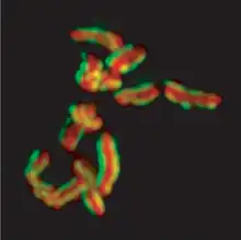 - ↑ (en) Guerra M., Cabral G., Cuacos M., González-García M., González-Sánchez M., Vega J. & Puertas M., 2010. Neocentrics and holokinetics (holocentrics): chromosomes out of the centromeric rules. Cytogenet. Genome Res., vol. 129, nos 1-3, pp. 82–96, , DOI 10.1159/000314289.