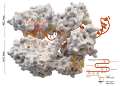 C'est une endonucléase d'ADN guidée par ARN, c'est-à-dire une enzyme spécialisée pour couper l'ADN avec deux zones de coupe actives, une pour chaque brin de la double hélice.