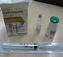 La ceftriaxone est un antibiotique bactéricide de synthèse de la classe des céphalosporines de troisième génération, appartenant à la famille des bêta-lactamines. Son large spectre lui confère une activité sur des bactéries à gram positif et à gram négatif. Son efficacité est très proche de celle de la céfotaxime. Elle est initialement commercialisée sous le nom de Rocéphine avant de l'être sous des formes génériques. Elle fait partie de la liste des médicaments essentiels de l'Organisation mondiale de la santé (liste mise à jour en )[3].