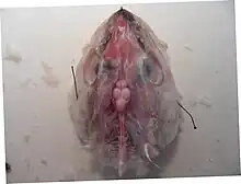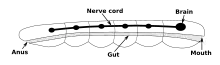 Un autre protostomien, le ver nématode Caenorhabditis elegans, a fait l'objet, comme la drosophile, d'études génétiques approfondies[12] car son plan d'organisation est très stéréotypé : le système nerveux du morphe hermaphrodite possède exactement 302 neurones, toujours à la même place, établissant les mêmes liaisons synaptiques pour chaque ver[13]. Au début des années 1970, du fait de sa simplicité et de sa facilité d’élevage, Sydney Brenner le choisit comme organisme modèle pour ses travaux sur le processus de régulation génétique du développement qui lui valurent un prix Nobel en 2002[14]. Pour ses travaux, Brenner et son équipe ont découpé les vers en milliers de sections ultra fines et photographié chacune d'entre elles au microscope électronique afin de visualiser les fibres assorties à chaque section et ainsi planifier chaque neurone et chaque synapse dans le corps du ver[15]. Actuellement, un tel niveau de détail n'est disponible pour aucun autre organisme, et les informations récoltées ont rendu possibles de nombreuses études.