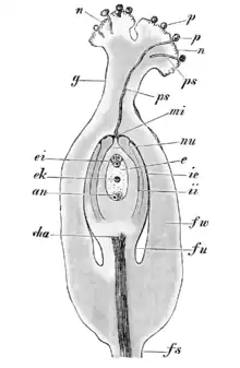 La chalaze est un réseau de fibres à la base des ovules d'Angiospermes qui fixe le nucelle aux téguments externes de l'ovule. Les faisceaux cribrovasculaires du funicule se ramifient au niveau du chalaze pour approvisionner l'ovule à partir de la plante mère[3].