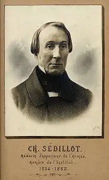Charles-Emmanuel Sédillot, né à Paris le et mort à Sainte-Menehould le , est un médecin militaire et un chirurgien français, précurseur de l'asepsie opératoire et promoteur de l'anesthésie au chloroforme[1]. Il est l'auteur de la première gastrostomie chez l'homme, en 1846. Il est professeur au Val-de-Grâce puis à la faculté de médecine de Strasbourg, chirurgien en chef de l'Hôpital militaire et directeur de l'École de médecine militaire de cette ville. On lui doit l'invention, en 1878, du mot «microbe»[2],[3], consacrée par Émile Littré dans l'édition de 1886 de son Dictionnaire de médecine[4].