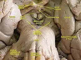 Le chiasma optique est la partie du cerveau où les deux nerfs optiques se croisent. Chaque rétine est divisée en deux hémirétines (une nasale interne et une temporale externe), les voies optiques des hémirétines nasales subissant une décussation (changement de côté) au niveau du chiasma[1].