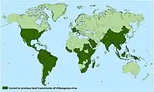 Le chikungunya n’est pas une maladie nouvelle. Le virus a été isolé pour la première fois en 1952-1953 lors d'une épidémie de fièvre qui sévissait sur le plateau du Makonde dans la province de Newala au Tanganyika (actuelle Tanzanie)[56] mais il est possible que quelques épidémies de dengue soient en réalité conséquence du CHIKV[57]. La maladie est responsable d'affections sévissant sous forme endémique en zones rurales d'Afrique subtropicale, et sous forme épidémique dans des populations immunologiquement naïves, en particulier urbaines, aussi bien en Afrique qu'en Asie du sud (Inde, Viêt Nam).