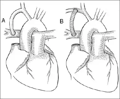 Shunt de Blalock classique (image de gauche) et shunt de Blalock modifié (image de droite)