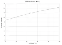 Le KCl étant un solide ionique, il est soluble dans de nombreux solvants polaires mais moins dans les solvants apolaires, c'est pourquoi il existe un grand écart de solubilité du chlorure de potassium entre l'eau et l'acétone, par exemple.