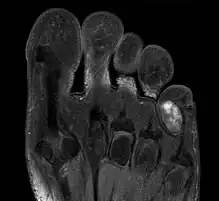IRM d'un chondrome extérieur sur un petit doigt de pied.