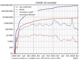 - ↑ « COVID-19 : le chef de l’OMS déclare la fin de l’urgence sanitaire mondiale | ONU Info », sur news.un.org, (consulté le ).