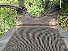 - le corps est un exosquelette, aplati (il peut évoquer un confetti) sauf après un repas. Il est garni de bandes de poils microscopiques, qui renforcent l'aspect rayé de cet insecte.