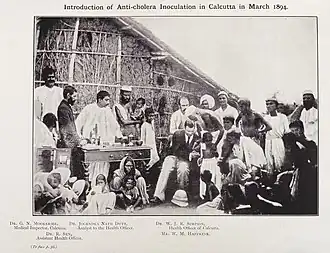 Waldemar Haffkine, un bactériologiste franco-russe, a concentré ses recherches sur le développement d'un vaccin contre le choléra et a produit une forme atténuée de la bactérie. Risquant sa propre vie, Haffkine réalise le premier test humain sur lui-même le . Pour tester le vaccin de manière définitive, il avait besoin d'une région où le choléra était répandu afin de mener des essais sur des humains à grande échelle et s'est donc installé en Inde en 1894. Après des résultats prometteurs à Calcutta, les propriétaires de plantations de thé en Assam lui ont demandé de vacciner leurs travailleurs[8].