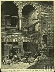 À la fin du mois de juin 1883, les premiers cas de choléra sont signalés en Égypte (occupée depuis peu par l'Empire britannique), dans la ville portuaire de Damiette, sur la côte méditerranéenne. La maladie se propage rapidement dans le delta du Nil et dans tout le pays durant l'été et l'automne[25], malgré des cordons sanitaires stricts et sévères[26]. Selon certaines estimations, 50 000 et 60 000 personnes périrent en l'espace de quelques mois[1],[10],[25]. Les sources de contamination étaient très probablement des pèlerins musulmans revenant de La Mecque et des troupes indiennes servant dans l'armée britannique[1],[10]. Des bactériologistes français et allemands furent envoyés à Alexandrie en 1883 pour étudier la maladie et en déterminer la cause[27].