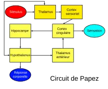 Le circuit de Papez est constitué de différentes structures du système limbique situées sur la face médiane du cerveau comprenant le cortex cérébral temporal et cingulaire, le thalamus, l'hypothalamus et certaines de leurs interconnexions.