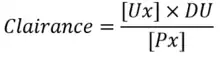 D'un point de vue quantitatif, la clairance est le rapport (à un instant donné) entre la quantité de produit éliminé par unité de temps et la concentration de la substance dans le fluide (plasma artériel en général) à cet instant. On mesure la clairance d'une substance en divisant la dose absorbée (dose administrée multipliée par le coefficient d'absorption) par la surface sous la courbe des concentrations C = f(t) (A.U.C. = Area Under Curve).