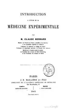 - Introduction à l’étude de la médecine expérimentale,1865. (OCLC 600479635) (Rééd. Champs, Flammarion, (ISBN 2080811371)). Texte intégral au format .html.