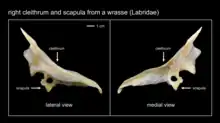 Chez les poissons modernes, le cleithrum est un grand os qui s'étend vers le haut à partir de la base de la nageoire pectorale jusqu'au crâne au-dessus des branchies[2]. Cet os a un intérêt pour les scientifiques car il peut permettre de déterminer l'âge d'un poisson.