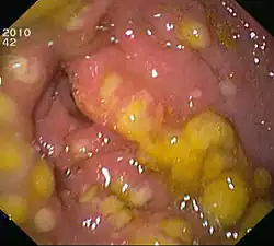 - ↑ (en) Chen N, Shih SL, Images in clinical medicine. Pseudomembranous colitis, N Engl J Med. 2011;364(5):e8. DOI 10.1056/NEJMicm1004244