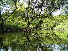 Forêt inondée d'eau douce de Ratagul, Bangladesh.