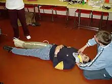 En attendant l'arrivée des secours, l'immobilisation d'une personne consciente se fait en maintenant la tête. Cependant, il peut être nécessaire de lâcher la tête, par exemple pour s'occuper d'autres victimes, ou bien si l'on est seul pour aller prévenir les secours. Sans retarder les actions de secours mentionnées on peut mettre des objets (par exemple des vêtements) autour de la tête de la victime ; ces objets constituent un repère pour la victime, à qui l'on va dire de ne pas bouger la tête.