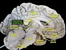 La commissure postérieure, appelée également la commissure blanche postérieure ou encore la commissure épithalamique (en latin : commissura posterior), est une bande arrondie de fibres blanches d'axones (substance blanche) qui traversent la ligne médiane sur la face dorsale de l'extrémité rostrale de l'aqueduc mésencéphalique (l'aqueduc de Sylvius). Elle a une importance particulière dans le réflexe photomoteur bilatéral.