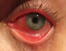 La conjonctivite virale est bilatérale, associée à des sécrétions claires, une conjonctivite folliculaire (hyperplasie lymphocytaire) et plus rarement d'une kératite. Elle est souvent épidémique et le virus le plus courant est l'adénovirus[2].