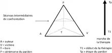 En ce sens, les stratégies de confrontation, de reconnaissance, de réparation et de pardon sont particulièrement prises en compte dans le modèle CIMI. Cette approche se fait avec toute la prudence et l’exigence requises, par étapes successives, selon un plan structuré de type « pyramidal », comme le montre la figure ci-après[10]