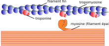 - le couplage excitation-contraction qui regroupe l'ensemble des processus permettant de transformer le signal nerveux reçu par la cellule en un signal intracellulaire vers les fibres contractiles ;