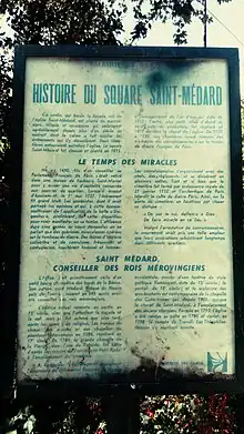 Panneau de la mairie de Paris relatant l'histoire du square Saint-Médard et de ses convulsionnaires.