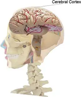 Le cortex cérébral (ou écorce cérébrale[1]), d'origine prosencéphalique, est la substance grise périphérique des hémisphères cérébraux. Il se compose de trois couches (pour l'archi- et le paléocortex) à six couches (pour le néocortex) renfermant différentes classes de neurones, d'interneurones et de cellules gliales. Le cortex peut être segmenté en différentes aires selon des critères cytoarchitectoniques (nombre de couches, type de neurones), de leur connexions, notamment avec le thalamus, et de leur fonction. On pense que l'existence de ces circuits serait à l'origine de la pensée.