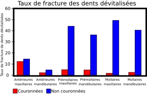 Le risque de fractures des dents dévitalisées augmente considérablement sur les dents postérieures quand une couronne ne les protège pas. En effet, une personne moyenne exerce une force musculaire importante sur ces dents postérieures qui est approximativement neuf fois supérieure à celle exercée sur les dents antérieures. Si la zone de contact postérieur effective est de 1 mm2, alors une pression de plus de 7.109 Pa s’exerce sur la restauration. C’est pour cela que les dents postérieures (c’est-à-dire les molaires et les prémolaires) doivent, dans pratiquement toutes les situations, être couronnées après avoir subi une dévitalisation afin de les protéger des fractures.